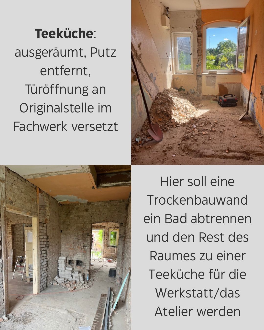 Wir haben mit den 5 Studentinnen aus Indonesien, den USA, ,dem Oman, den Philippinen und Deutschland in den 2 Wochen unseres 1. Baucamps so wahnsinnig viel an altem Material von den Wänden geholt und durch Lehmputz ersetzt, dass wir am 17.09. unsere erste Kunstwerkstatt dort durchführen können und allen das Ergebnis unserer harten Arbeit zeigen können. Wir haben die 2 Wochen sehr ausführlich dokumentiert und auf unserem Instagram-Profil für Interessierte veröffentlicht: https://www.instagram.com/gutfellerson/